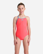 Dievčenské plavky Arena so športovým strihom chrbta a stredným vykrojením bokov. Plavky sú z materiálu MaxFitEco , ktorý je odolný voči chlóru, slnečnému žiareniu aj slanej vode. Materiál MaxFitEco je mäkký, elastický a vďaka Lycra® vláknam skvele padne.
