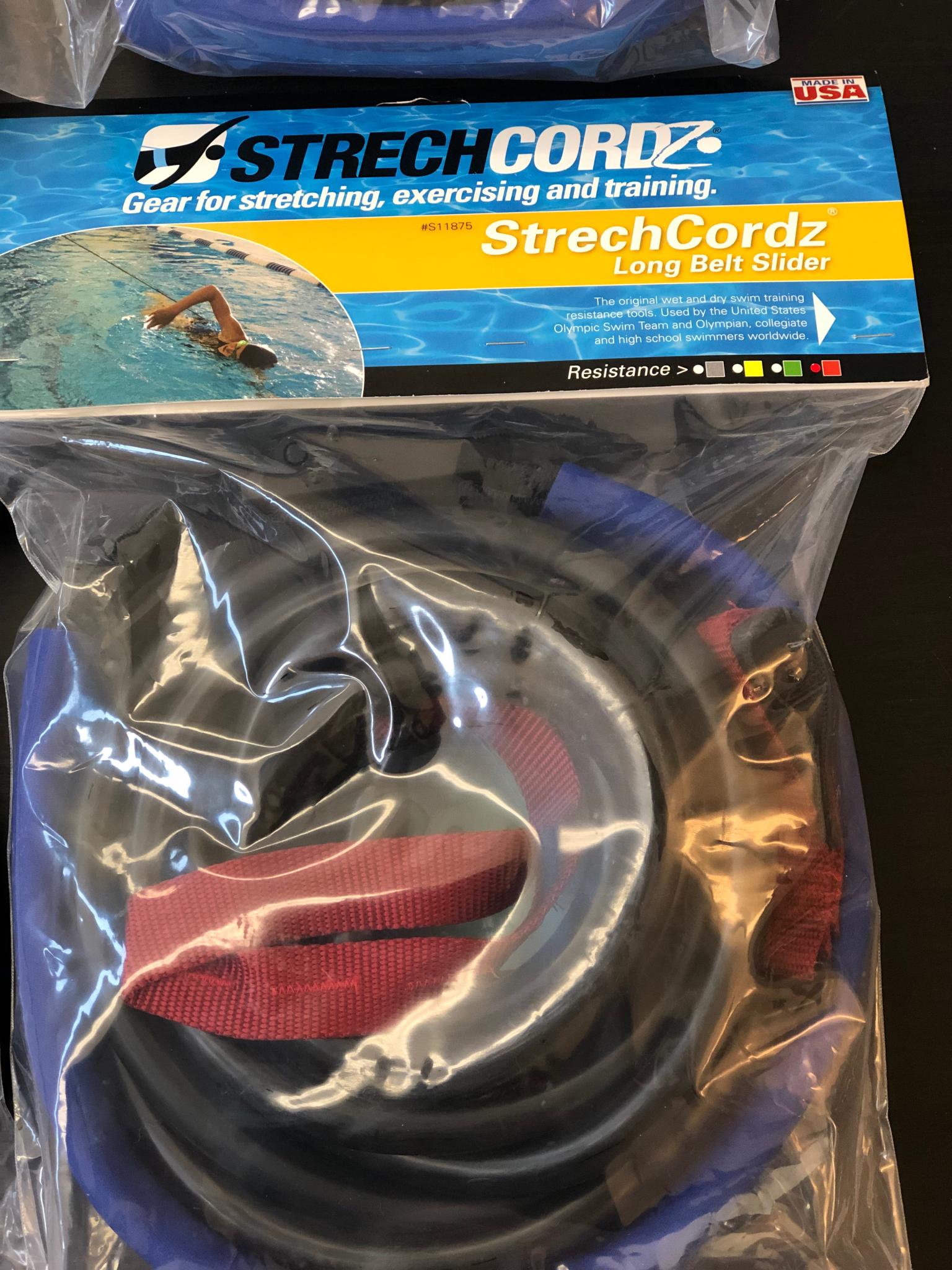 The S11875 was improved for safety and comfort. Used for adding resistance to swimming, the Long Belt Slider is StrechCordz’s #1 in-water resistance product. It provides swim out and pull-back resistance to improve strength and stamina. Accelerate quicker, strengthen the finishes of each stroke and improve your times. A proprietary, embedded safety cord runs the full length of the tubing and acts as a limiter to help prevent over-stretching.