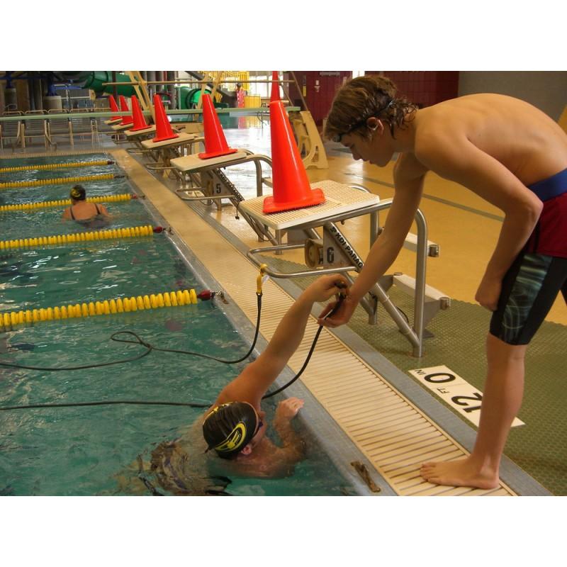 The S11875QC is an enhancement for the Long Belt Slider and serves as an answer to trainers and coaches seeking faster transitions during practices.  The Quick Connect’s  buckle closure allows the product to be quickly and easily transferred between swimmers as they enter and exit the pool. Ideal for group training.