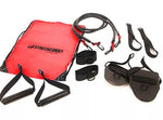 he S104 comes with a  carry bag containing one pair each of handles and adjustable leg straps and two 3ft/90cm tubes with attached mounting straps and clips.  Interchangeable.  Replacement and additional parts available.  Available in five resistance levels.